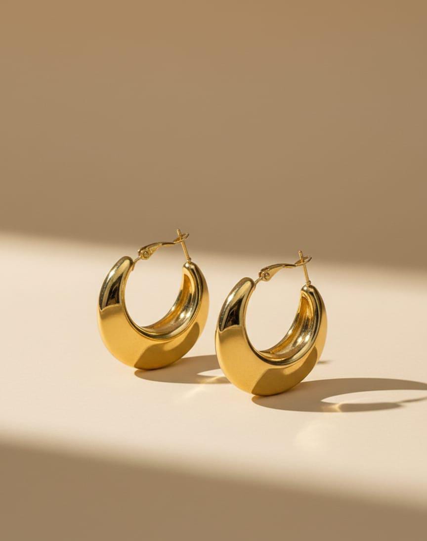 Upgrade your look instantly with these iconic gold drop earrings. Crafted from non-tarnish Stainless Steel, their thick, luxurious design and distinctive textured finish make them a true statement piece.